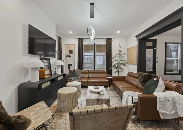 This holiday home is within 0.5 miles of John Glenn Columbus International airport and within 25 minutes' walk of such cultural points of interest as Kelton House Museum and Garden. Guests can visit Asbury United Methodist Church, which is in proximity to the Columbus villa, or check out Franklin Park Conservatory and Botanical Gardens, which is a mere 0.7 miles away. Educational highlights situated approximately 10 minutes' drive from Sauna - Gameroom - Lux Design - 5 Beds - Sleeps 10 villa include the private Columbus College of Art and Design.